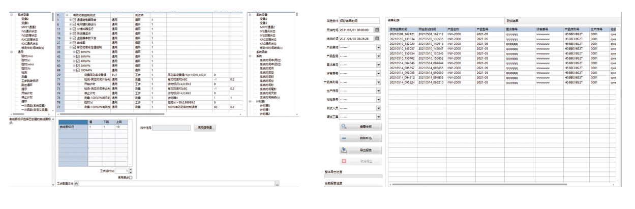 光伏逆变器测试系统由交流模拟电网电源、光伏阵列IV模拟器和系统柜及配套测试仪器等组成,以国标、能标为测试依据,采用自主开发的系统测试软件实现对光伏并网逆变器的电性能、保护功能、精度、以及定制化功能的测试。